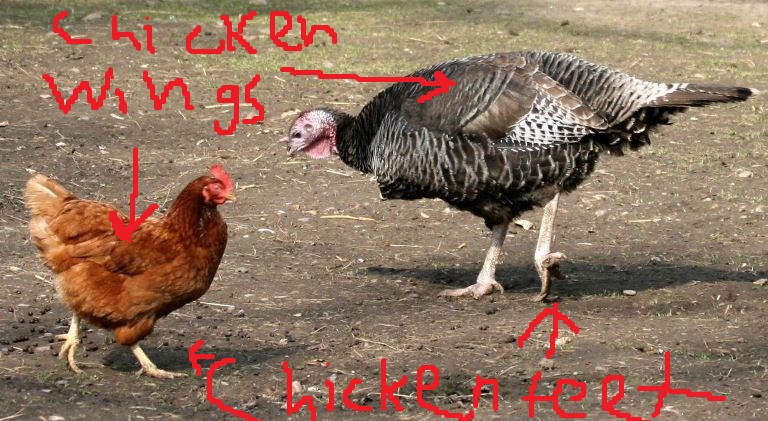 Reader, it’s time yo uknow the truth. Turkeys are just large, expensive chickens. They’re the same animal. Big thanksgiving just wants to charge you more because they’re GREEDY
